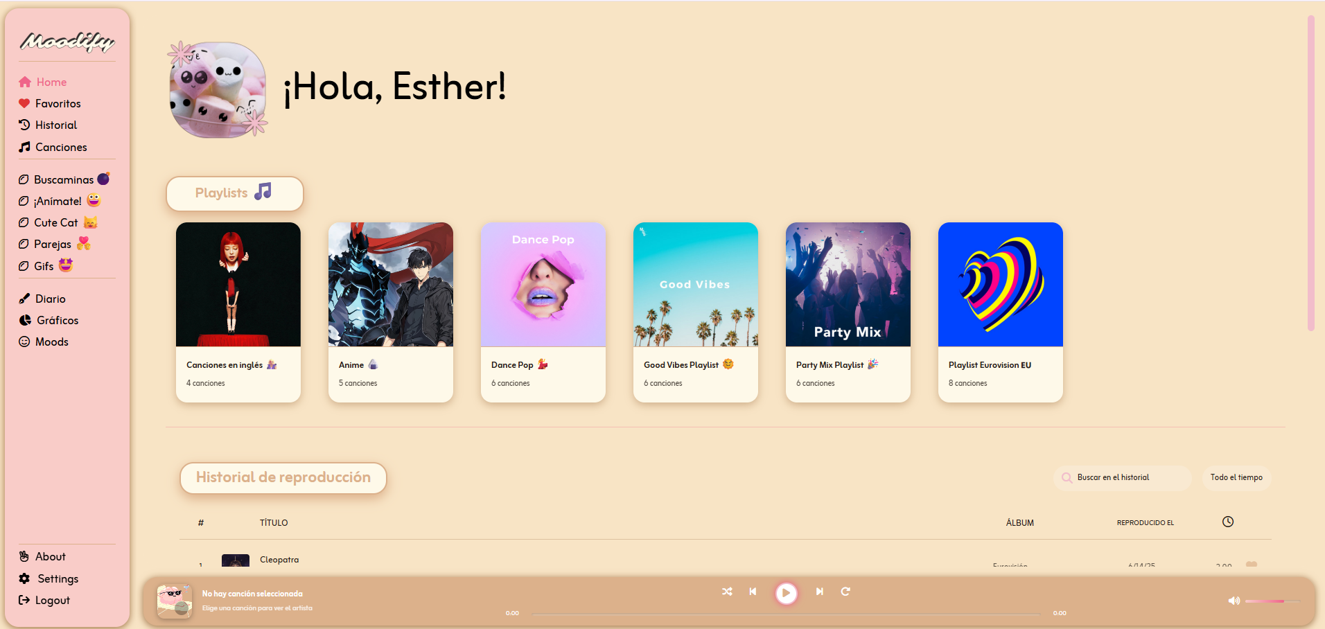 Plataforma web de música con integración de funcionalidades de seguimiento emocional y entretenimiento. Desarrollado con Angular, consume múltiples APIs para minijuegos y emplea un backend propio (PHP/MySQL) para el sistema de registro de usuario y el calendario de estados de ánimo.